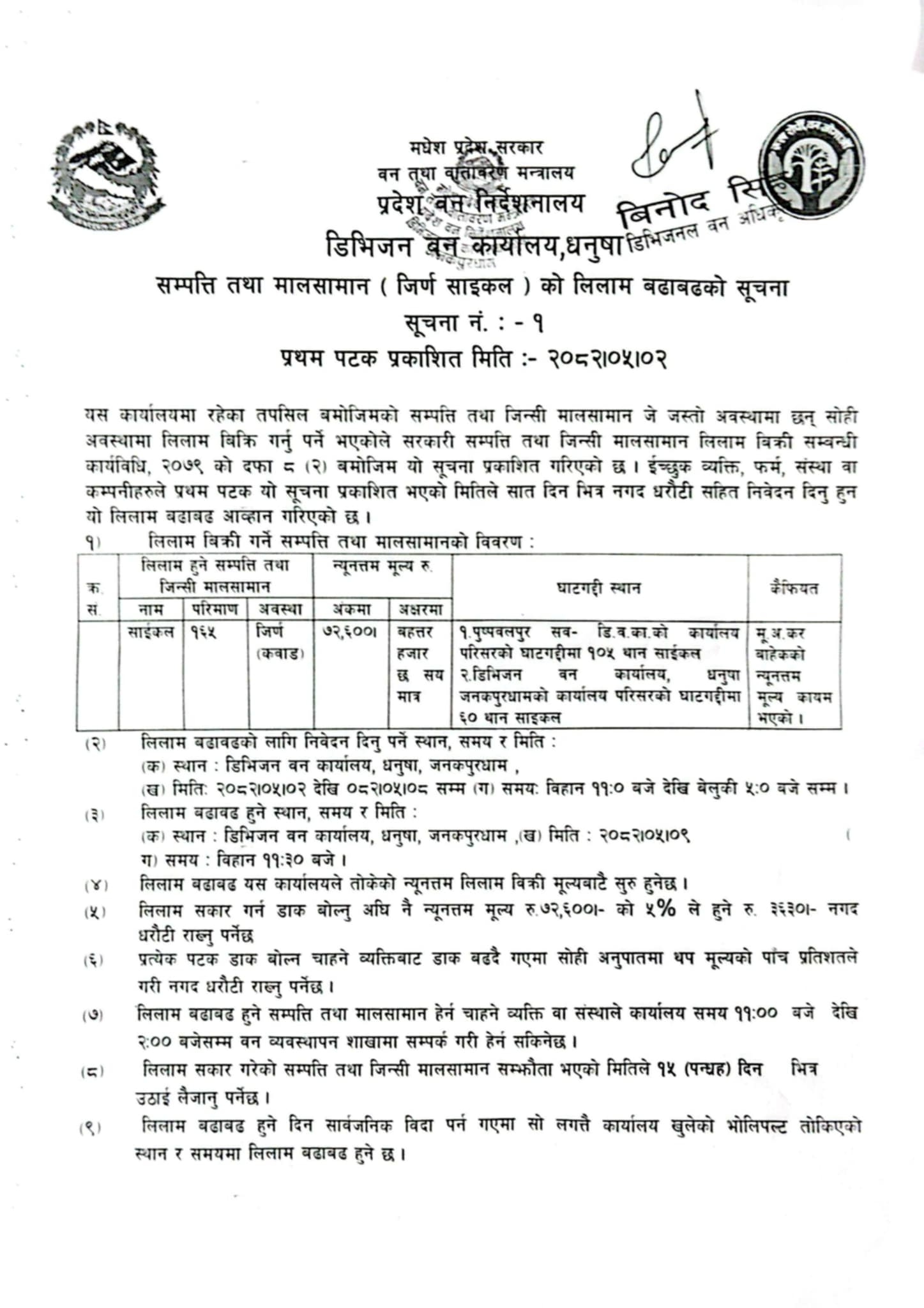 साइकल लिलाम सम्वन्धी सूचना प्रकाशन